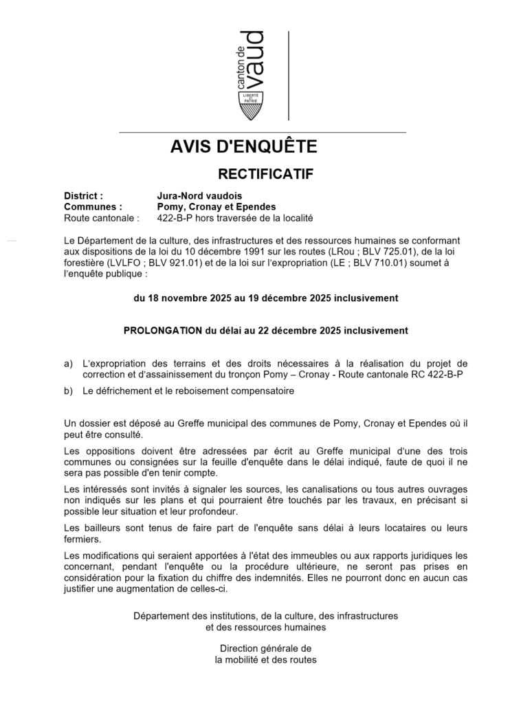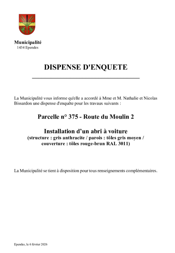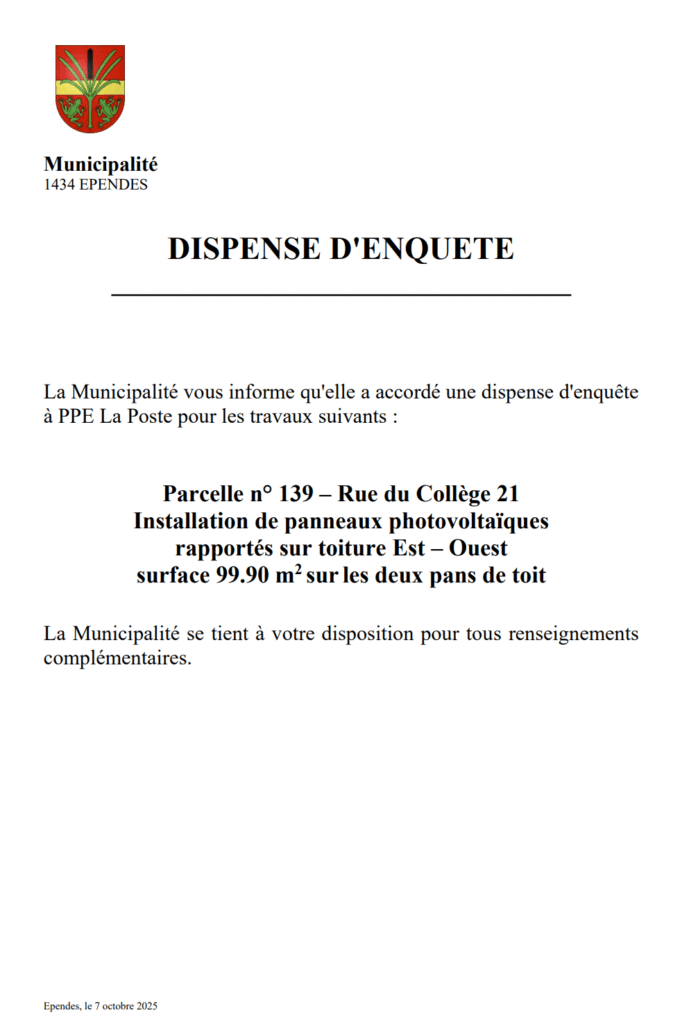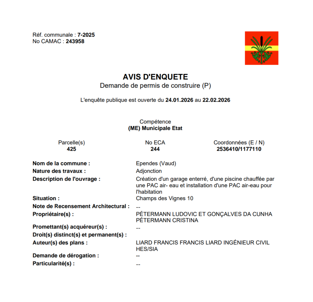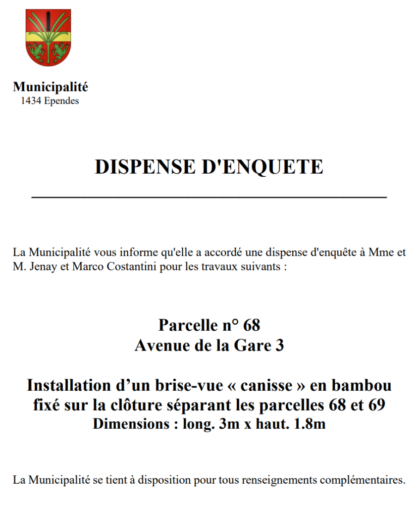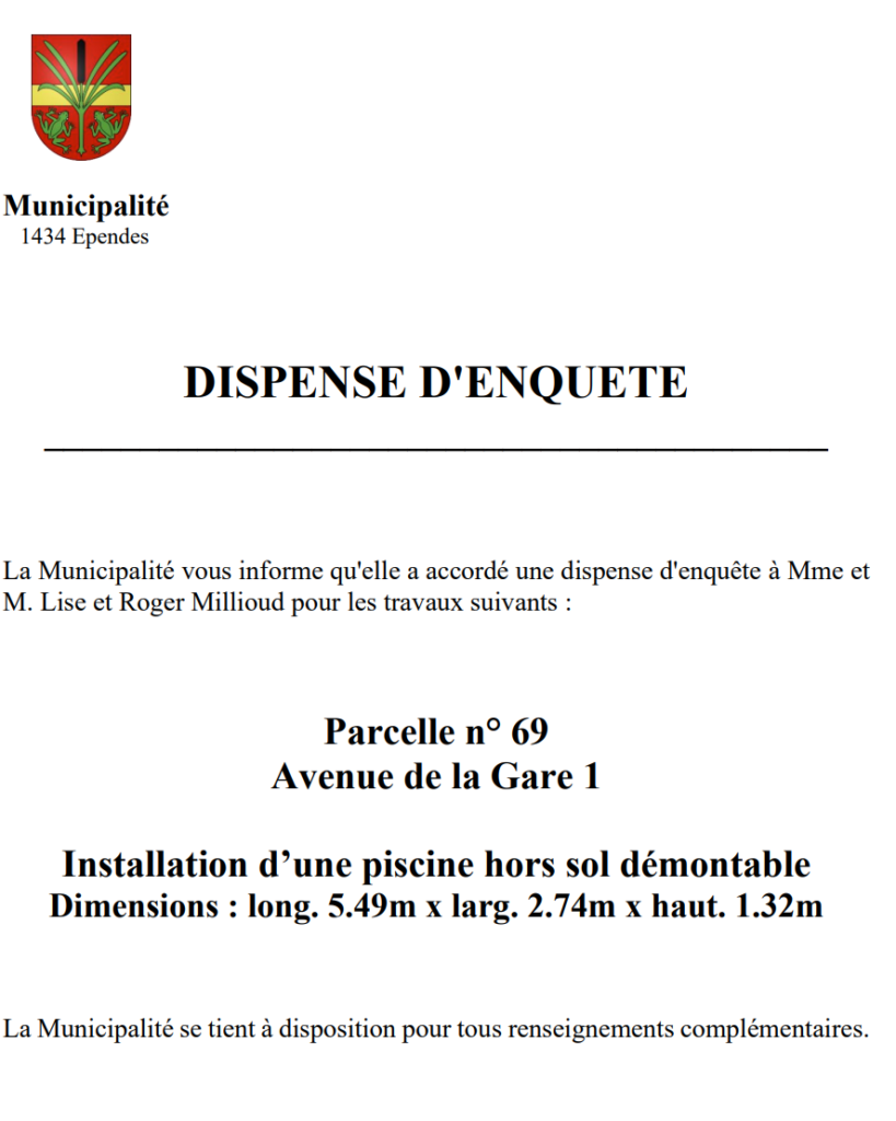 Les dates d’apparition/publication des mises à l’enquête sur le site internet de la Commune d’Ependes ne sont pas les dates définies des mises à l’enquête. Seules les dates inscrites sur le document communal de mise à l’enquête font foi.